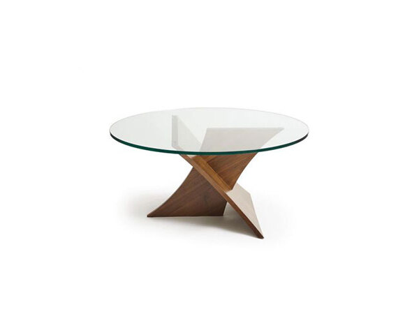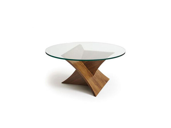 The tables are crafted in solid American black walnut and topped with clear tempered 15mm glass. The finish is GREENGUARD Certified for low chemical emissions.