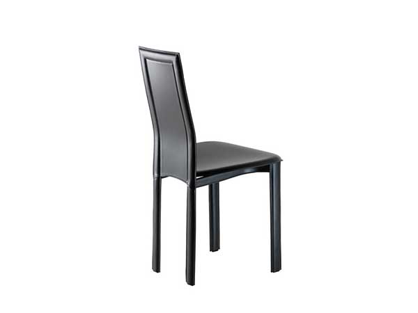 Chair with steel frame, covered in leather as per sample card. Standard stitching.
