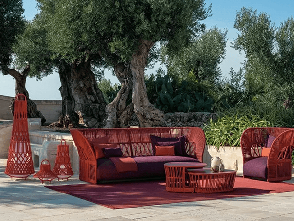 Rope braiding can be found in the other elements of the collection and makes this element perfectly in line with the idea of play and fun that permeates the whole Liff 3 Seater.