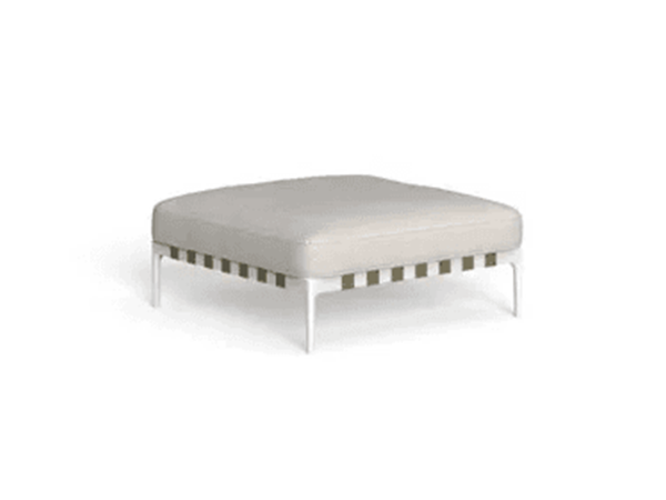 The Linas Pouf expresses the refinement typical of the indoor world into the outdoors, thanks to the soft line of the fabric cover and the elegant design of the straps. The sophisticated colour palette evokes the colours of the natural region of Salinas, in Ibiza, expressing a timeless charm.