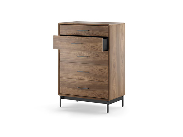 Although they float on elegant steel bases, don’t underestimate the strong footprint of the LINQ storage cabinets. Engineered with function and security in mind, the 6-Drawer Dresser and 5-Drawer Chest are the anchors of any LINQ bedroom.