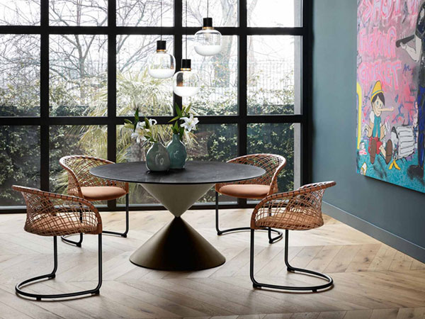 Of marked elegance, the Lontano armchair extends its charm to the surrounding environment. Under the rays of the sun it gives life to a play of light and shadow, giving a scenographic effect of great impact.