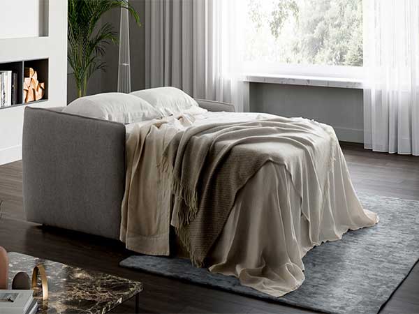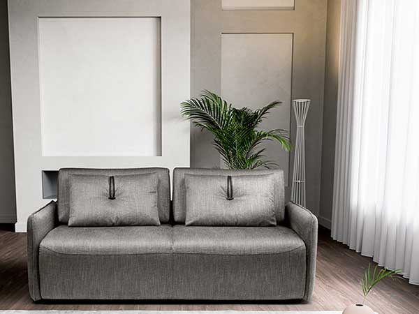 Loray with its refined Borghese design and with its sinuous lines is the perfect amalgamation between comfort and elegance. The two lumbar pads valorise the aesthetic appearance, characterized by a metal button and lather straps. Gifted with a wheel mechanism which allows it to facilitate simple movements, only available in fabric.