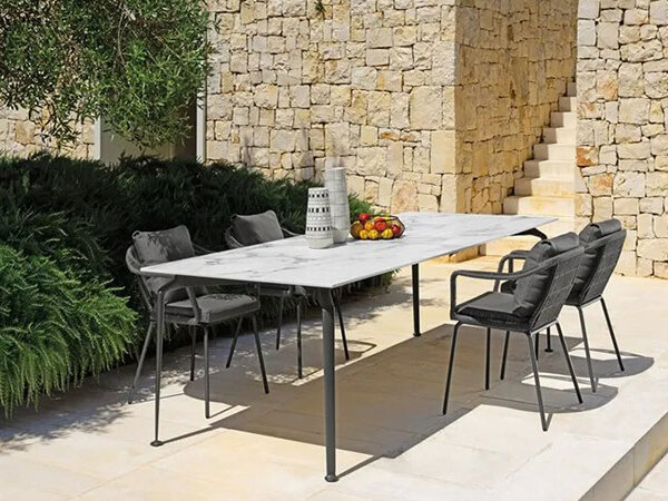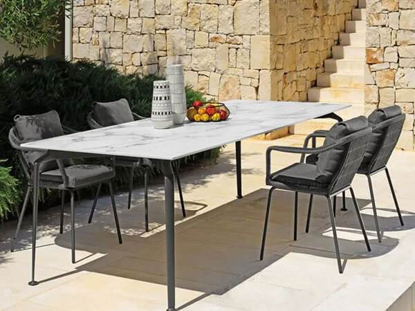 The Lua S 250×100 dining table, spacious and elegant, has a very light appearance.‎ Together with the soft and comfortable shape of the Lua S dining armchair, it is perfect to decorate your garden.‎