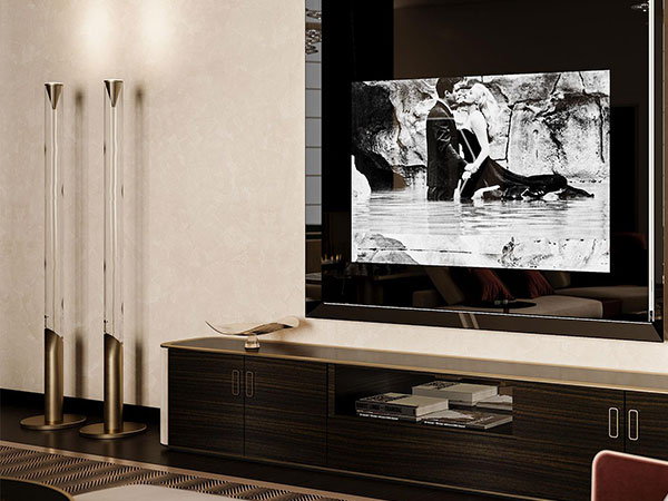 Floor lamp in transparent borosilicate glass with chromed aluminium support. Available also in white shaded glass with double light. LED lighting system.