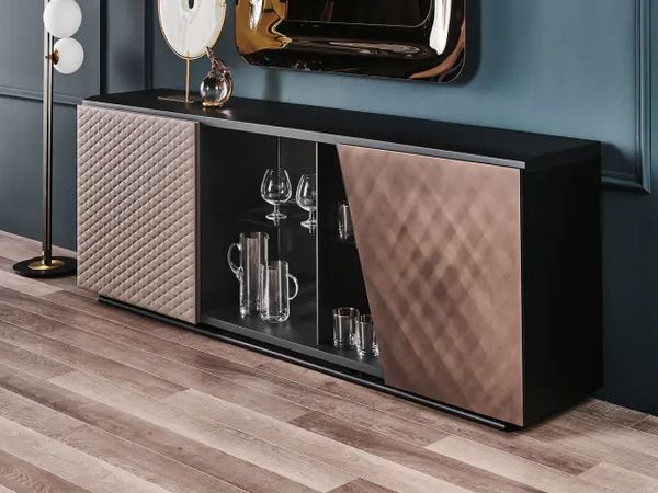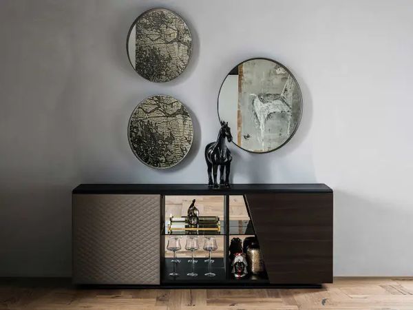 The Lues sideboard endows a contemporary space with unique storage capabilities that are both stylish and helpful. Stow away and show off decor and dazzling dishware using the hidden and open shelving opportunities. The doors are embellished with chicly contrasting finishes for modern peculiarity that is hard to find anywhere else. Place it in the dining room, living room, hallway, etc., for a grand focal point. Manufactured in Italy and designed by STC Studio, this sideboard epitomizes the connection between fashion and modern furniture through elegant details that exceed every expectation.
