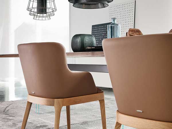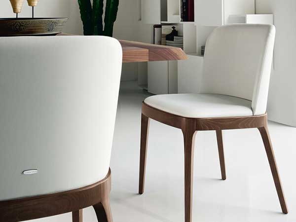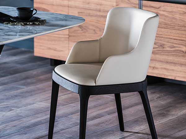 Chair with or without arms with frame in natural ashwood (frN), Canaletto walnut stained ashwood (frNC), burned oak stained ashwood (frRB), open pore matt white (fr71) or black (fr73) painted ashwood. Seat and back upholstered in fabric, synthetic nubuck, micro nubuck, synthetic leather or soft leather as per sample card. The cover is not removable.