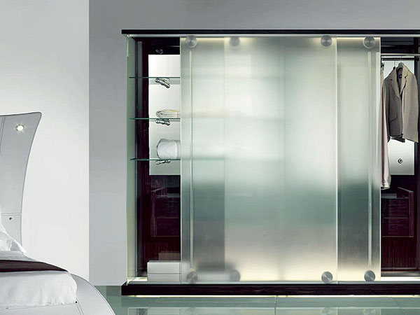 Wardrobe with sliding doors in extraclear frosted glass 10mm thick.