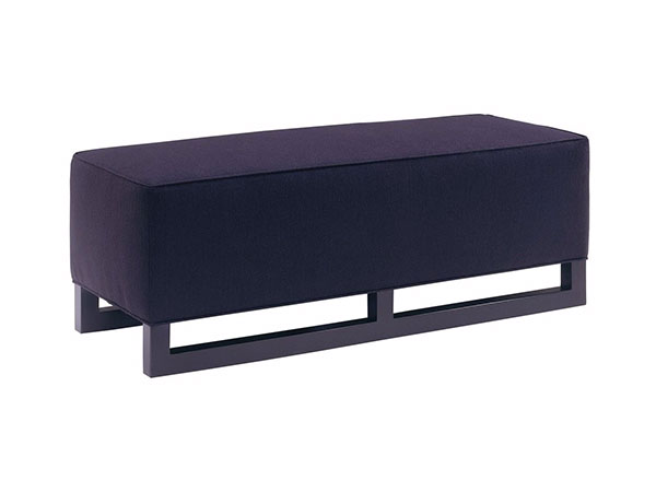 Description: Bench Ottoman, Welted W/Cutout Wood Base