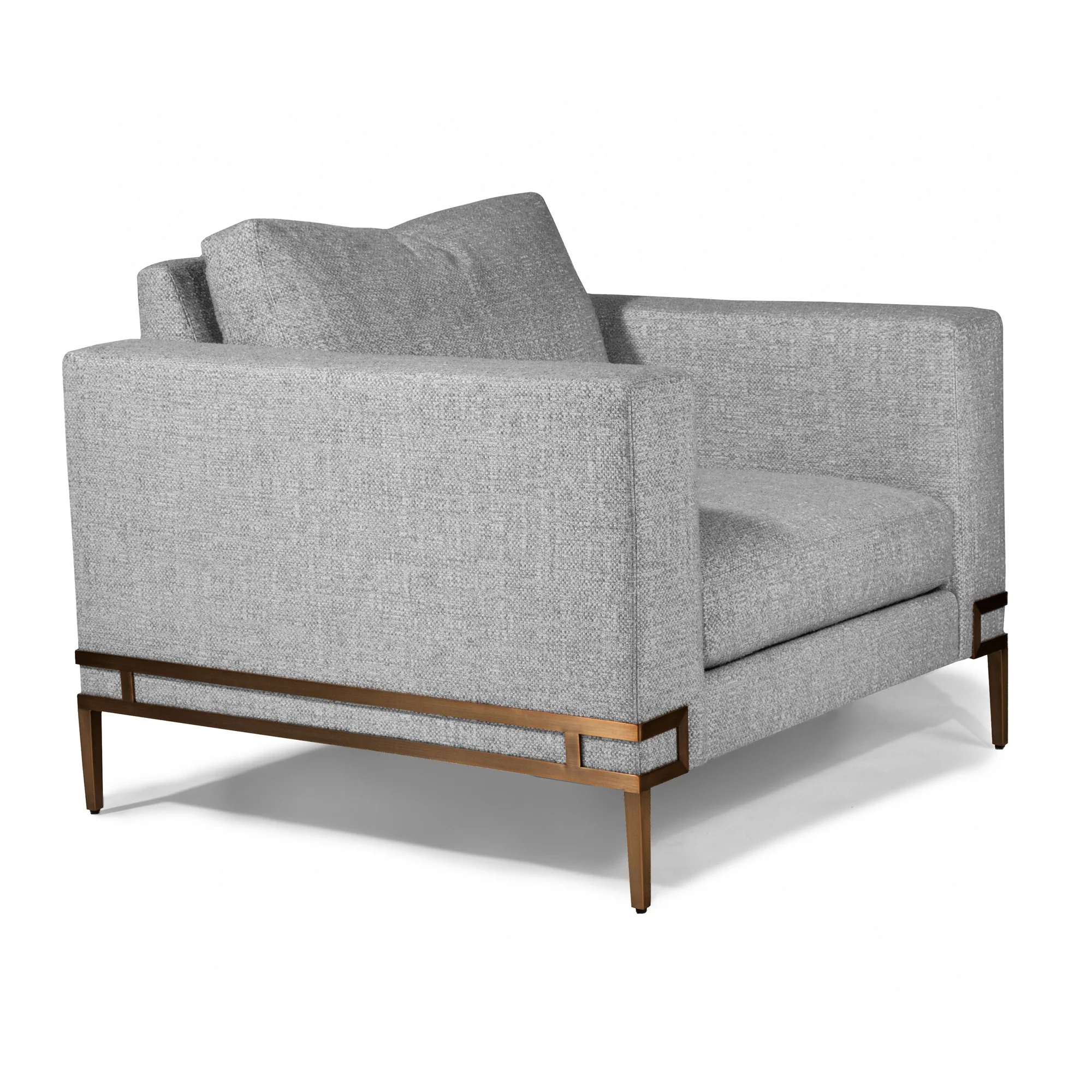 Designed by Ransom Culler, the Manolo lounge chair is one of our new contemporary classics. The Manolo lounge chair features elegant but powerful high-heeled legs available in brushed bronze or polished stainless steel. Select any of our in-house curated fabrics or leathers or provide COM. Lounge chair available in polished stainless as No. 1339-103. Coordinating Manolo sofa and modular sectional sofa items are also available.