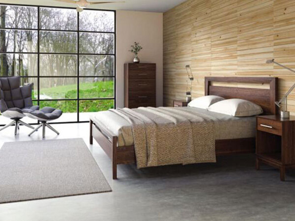 Manny 5 dressers and chests feature soft close extension drawers. The Manny 5 Bedroom is crafted in solid walnut with natural finish. The Manny 5 Bedroom is also crafted in solid cherry and Made to Order in several finishes. The finish is GREENGUARD Certified for low chemical emissions.