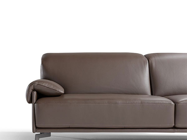 The uniqueness of the Manore model is represented by the seat cushion visible from all sides, a very wide and high cushion that replaces the side, emphasized by a horizontal leather base that turns vertically as part of the armrest.