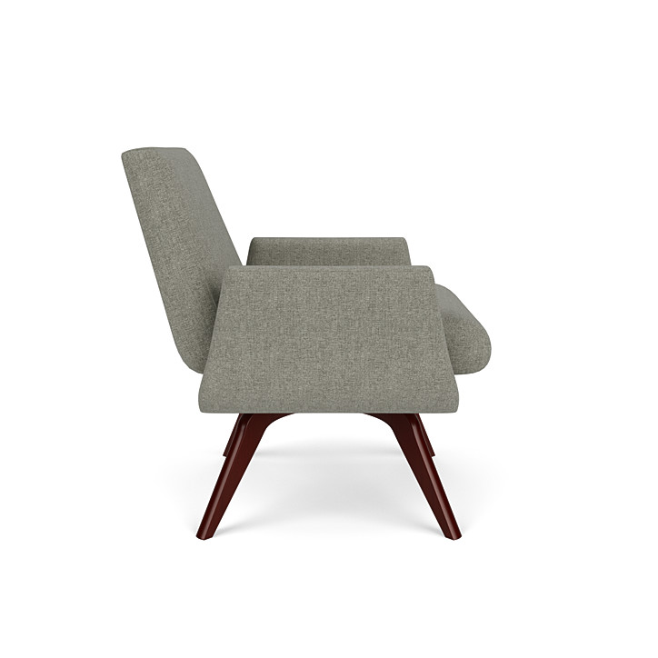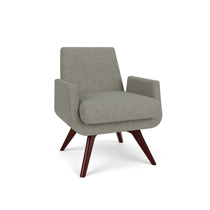 Designed by John Mascheroni, the small scale Marshall is the epitome of mid-century modern with classic contemporary straight edges mixed with a rounded wooden-crossed base. The memory swivel base turns about 120 degrees and always returns to center.
