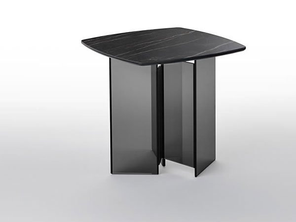 The side table or bed side table is part of a furniture collection characterised by a base in extra clear or smoked glass.