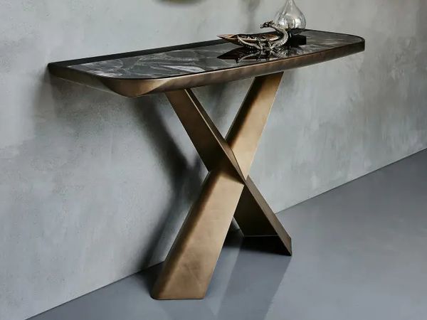 The Minal K Premium console table is a lovely statement piece in a contemporary home. The geometrically inspired base features an X-shape and has sculptural elements for an artistic touch. With multi-dimensional aspects, it makes the table stand out in style. There is ample space on top to show off beautiful pieces of modern decor.