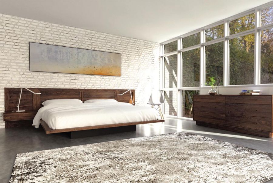 Modlux is a highly configurable bedroom and storage system that can adapt to most spaces and needs. Modlux Beds, configured for mattress only, may be ordered in multiple headboard designs and heights with either under-bed storage or with a deeply in-set plinth base for a dramatic floating motif. All beds are available with attachable nightstands with either a flat shelf or single drawer storage. The Modlux Bedroom is crafted in solid maple, cherry or American black walnut hardwood and Made to Order in several finishes with a variety of knob or pull options. The finish is GREENGUARD Certified for low chemical emissions.