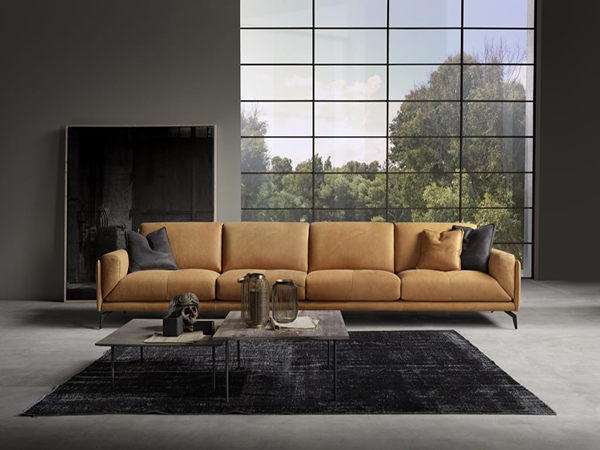Mourr is characterized by a special design where the seat and backrest cushions are rested on a linear frame offering a sartorial arm detail. A single central topstitch on the seat offers this model a true sense of charisma.