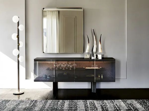 The Nabby sideboard adds luxury to a modern home and is ideal for areas in need of storage and display capabilities. The glass doors show off the ample shelf space inside that has integrated lights to show off your fine china and treasured objects. With intricate diamond tufted stitching on the back panels, it makes the sideboard a gorgeous focal point in a dining area or living room. Thanks to excellent craftsmanship, it is sustainable for years to come.