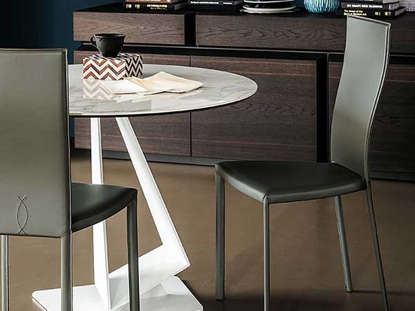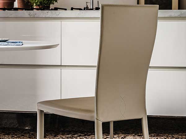 Chair with steel frame covered in leather as per sample card. Standard stitching