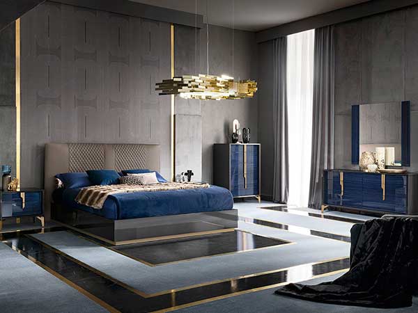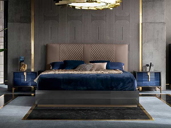 Modern Italian Bedroom Set Oceanian by ALF Italia. Oceanian luxury bedroom furniture collection made in Italy by ALF makes any interior sparkle. This bedroom features a newly developed color pallet unique only to Oceanian collection to reflect light with its lacquered finish and create a truly submerging filling. The bed is available in US standard Queen, King, and California King sizes. The Oceanian bedroom also offers a wide selection of matching case goods: nightstands, dresser, chest, mirrors, vanity, and wardrobes; to complement your bedroom interior and fulfill it with so necessary storage space.
