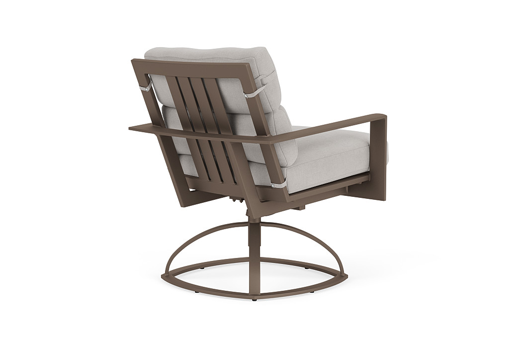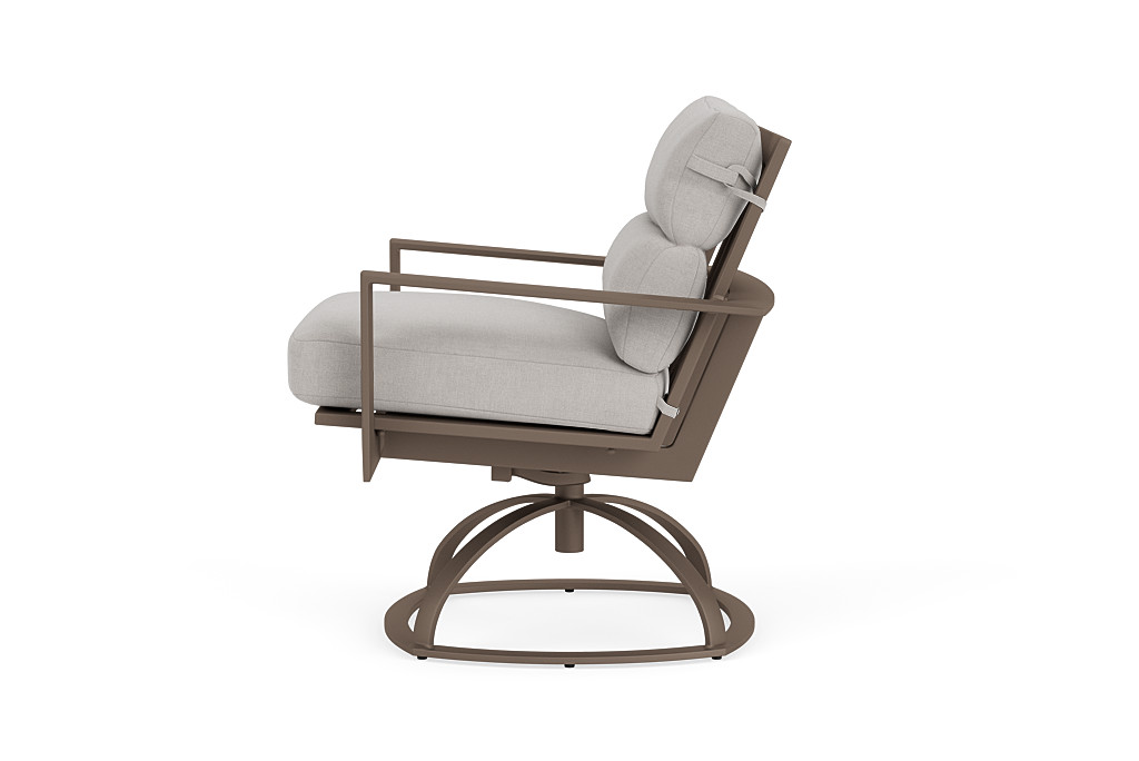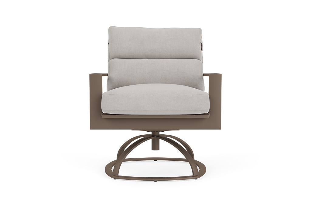 A broad, flat extrusion creates a smooth, pleasing touch and complements the frame’s lengthy, slender profile. The arms are crisply bent into a rectilinear shape, reminiscent of the geometry prominent during the heyday of modern design. The Parkway Swivel Rocker provides near limitless fabric selections and delivers ultimate comfort in an elegant fashion.