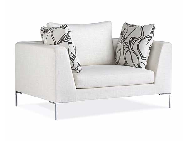 Description: Accent Chair W/Loose Seat & Back, 2 Arm Pillows W/Metal Leg