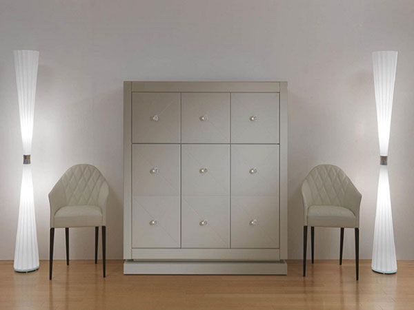 Floor lamp in plissé white coated Murano glass with junction in shiny metal. LED lighting system.