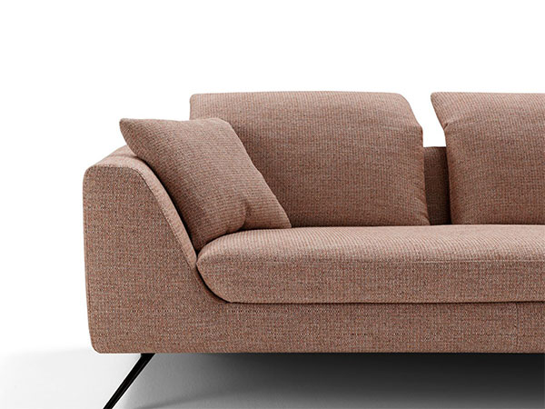 The Prano model is equipped with three movable backrests, which allow you to create your own comfort area anywhere on the sofa, characterized by reclining headrests incorporated into the padding.