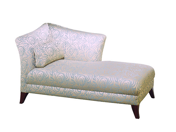 Description: One Arm Chaise W/Wedge Kidney Pillow & W/Wood Legs