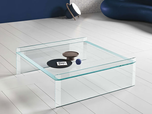 Low table with 15mm top and bevelled edges. Table available in square or rectangular shape.