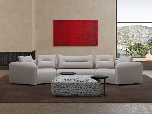 Queen L is drawn in a free style. Curves, cuts, hyper-tensioned lines regulate uncontainable fluid forms, alternating opposing introflexed areas with others in round expansion. Born with the idea of using the sofa as the main piece of furniture for daily comfort, it has a welcoming, deep seat, a dynamic and contemporary space to share.