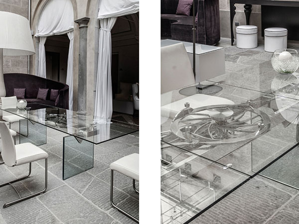 The synchronized mechanism in the center of the table extends it with just the click of the optional remote control, or it can open manually by pulling the discreet lever underneath the table.