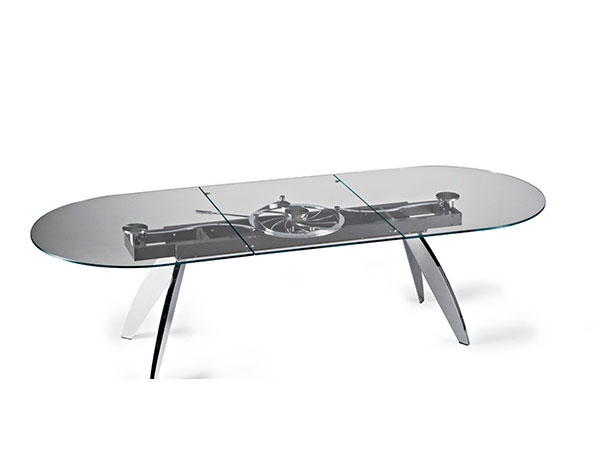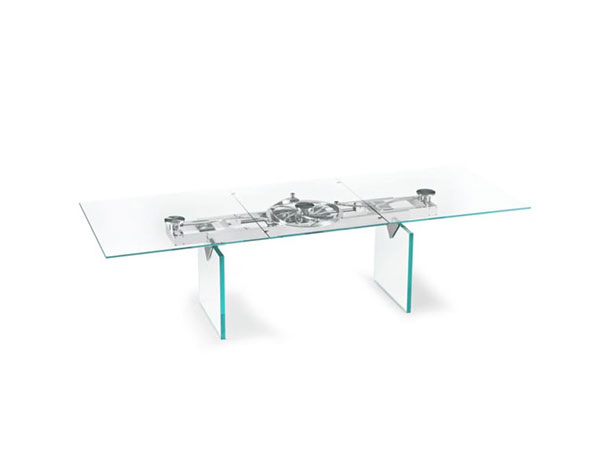 Additionally, the eye-catching mechanism in the central extension leaf stands out against the main table top for a dazzling feature.