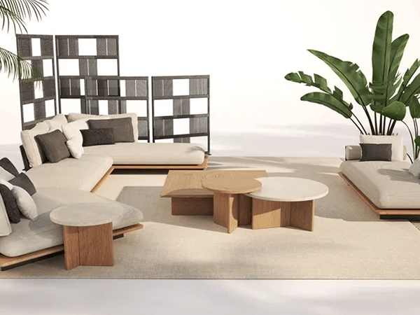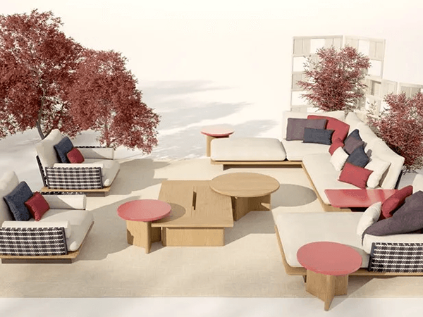 Composed of sofa, table, chairs and sunbeds, Raden with Chaise collection responds to the desire of its creators to imagine products that gave the impression of floating on the water, just like wooden rafts. The sofa thus becomes floating, like a boat in the middle of the sea, able to navigate the dreams and fantasies of anyone who sits on it. Later, they added lightweight interwoven backs and cushions that, on the particular structure, become like sails that push the imagination into a new dimension. The whole collection is based on the ability of designers to make their own style from the brand, enhancing the know-how acquired over the years and creating families of multi-material and innovative products.