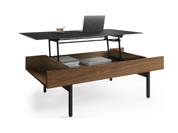 A beautifully functional lift-top coffee table, Reveal combines an easily raised satin-etched tempered glass top, hidden and open storage, and a sturdy steel base to provide the ultimate combination of function, versatility, and modern style.