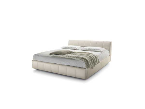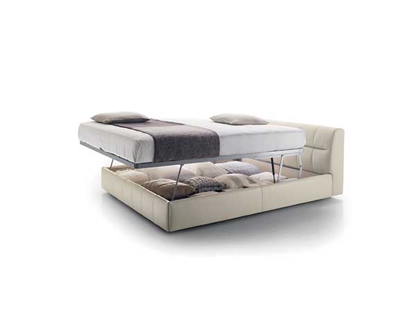 Vertical lines to mark the upholstered bed ring. Its headboard, available in two heights, is characterized by the intersection of these lines with horizontal signs showing a strong character. These intersecting lines form a smooth texture, revealing a young and contemporary design. The storage version is available with the base mechanism “one movement” and “two movements”.