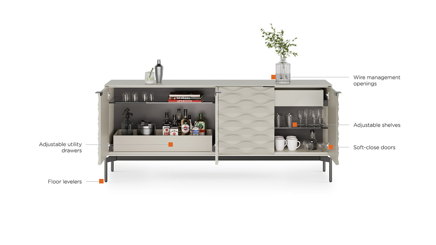 Anchoring an entryway or serving as a sideboard, the Ripple console provides attractive and versatile storage.