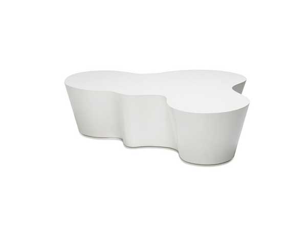 The organic shape of this cocktail table is a pleasing accent in any modern setting. Each hand-finished table is constructed from 12 individually applied layers of lacquer to ensure its lustrous shine and superior quality.