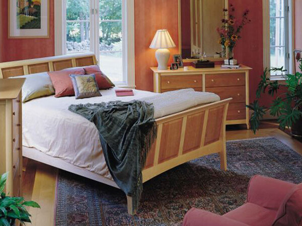 The Sabah H Bedroom exhibits the clean lines and balanced proportions of its Shaker influence. At the center of the Sabah H Bedroom is the striking bed design of the romantic raised panel sleigh bed. It has a generous headboard and can be configured for a mattress and box spring or mattress only. The Sabah H bed with a high footboard is available with either a 51″ or 45″ high headboard.