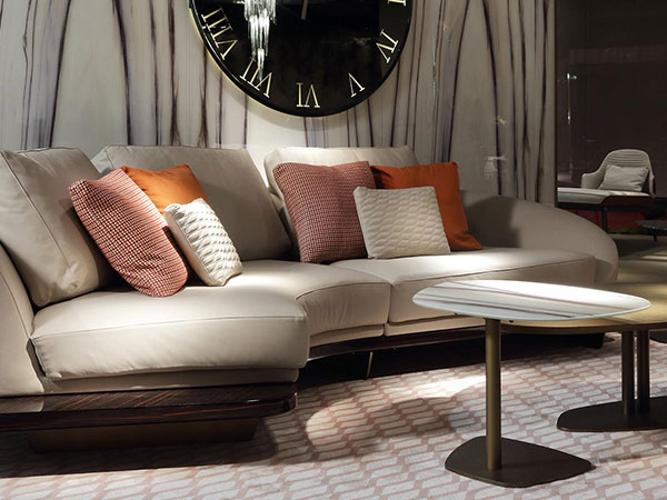 Sofa with wooden structure padded with polyurethane foam. Seat cushions in polyurethane. Patented back cushions in feather with polyurethane insert internally composed by two lift layers to grant different comfort levels.