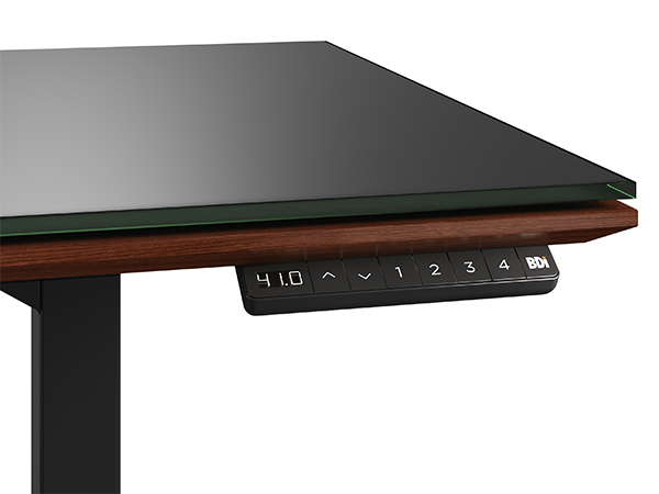 BDI designed this power adjustable sit/ stand desk with height memory settings and incredibly thoughtful cord management. It’s available in walnut or charcoal ash.