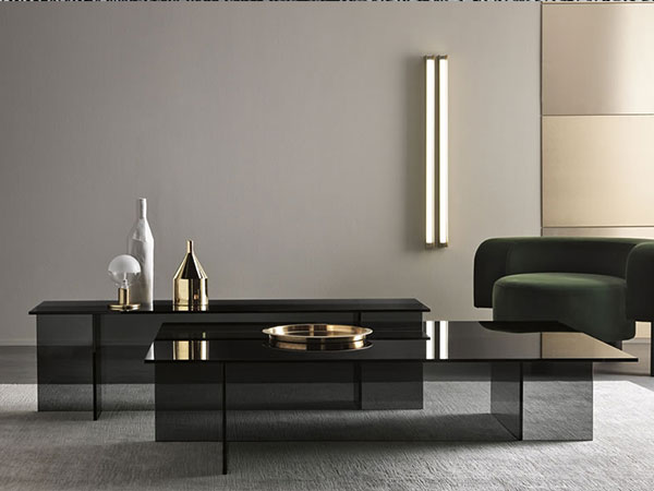 Furniture collection of rigorous and essential design with vertical, symmetric and orthagonal structural elements.