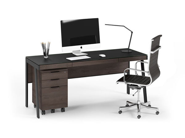Partnering a luxurious satin-etched glass work surface with a built-in modesty panel, and innovative wire management, the 6901 creates an inspiring workspace.