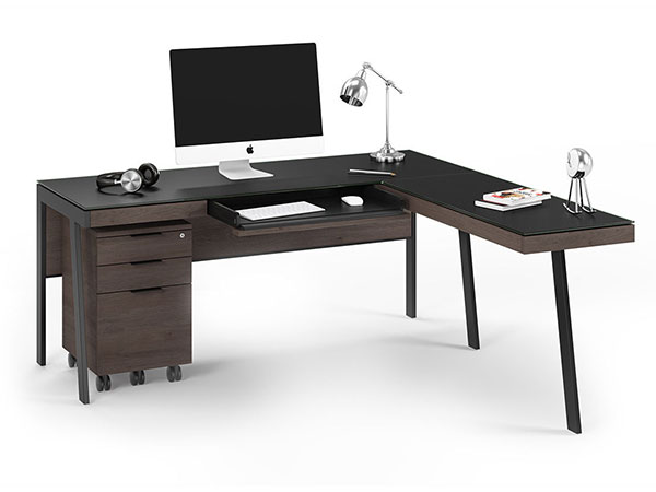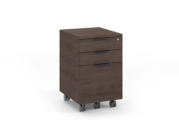 Low mobile file cabinet with locking wheels, a letter/legal sized file drawer and two supply drawers. Designed to fit neatly under the 6901 Desk, or as a compact printer stand.