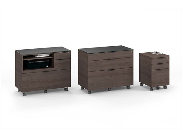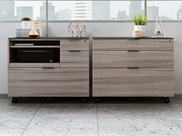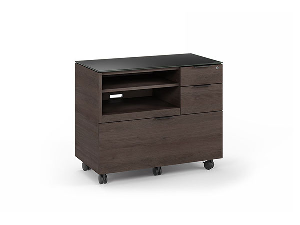 Making the most out of a compact space, this multifunctional cabinet combines a lateral file drawer with a push-to-open printer tray, adjustable shelf, and two storage drawers.