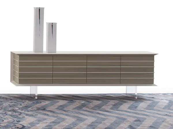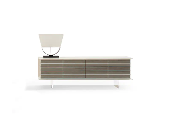 Geometrically inspired and practical, this sideboard is the perfect storage solution for a modern home. The sleek structure features a textured striped pattern along the front and sides for an eye-catching touch. With four compartments that have swing doors, there is ample room to keep your belongings organized, while the top provides countless décor opportunities. Contrasting finishes stand out against one another, making the sideboard a lovely focal point.
