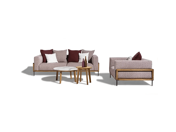 The teak rigid and geometric structures characterizing Soft 3 Seater collection support the embracing and important seats of the outdoor modular sofa, creating a perfect balance between shape and volume.‎ The modular sofa consists of 2 square elements (left and right) and two longue elements (left and right) that allow many combinations to obtain your own desired shape.‎