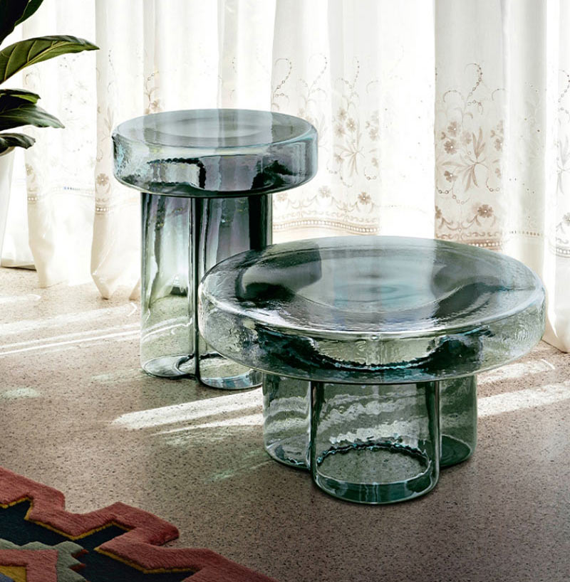 In Solari, the glass vibrates: its tough, hammered surface fragments its transparency to give a primitive aesthetic. This is artistic value granted to an industrial product.