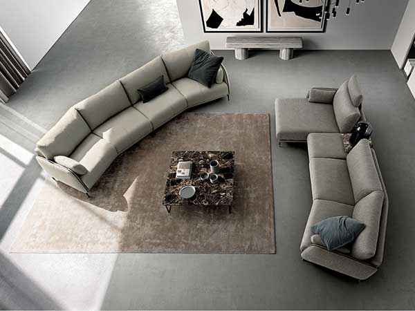 The slim armrest bordered by a hinge give Ghisolfa a truly trendy look. Accessories such as the marble coffee table and headrest also give it an original and unique style.