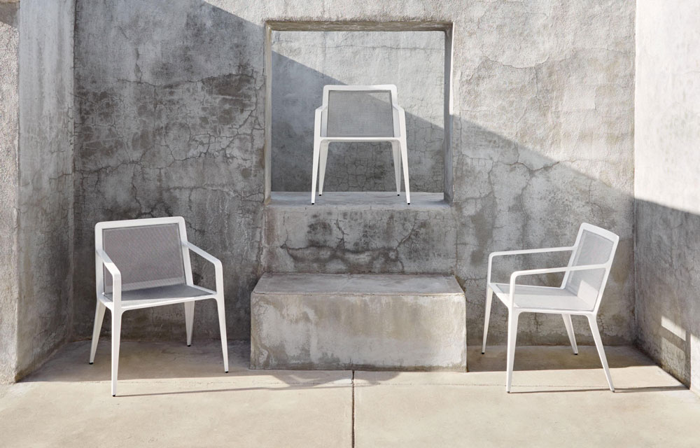 Inviting moments of quiet repose, our Still collection is simplicity itself. Crafted of strong, lightweight aluminum with a smooth, powder-coated finish that stands up to the elements, the Still Arm Chair is ideal when combined with Still Collections loose cushion ottoman. Sturdy powder coated frame work make this collection sustainable against weather elements.